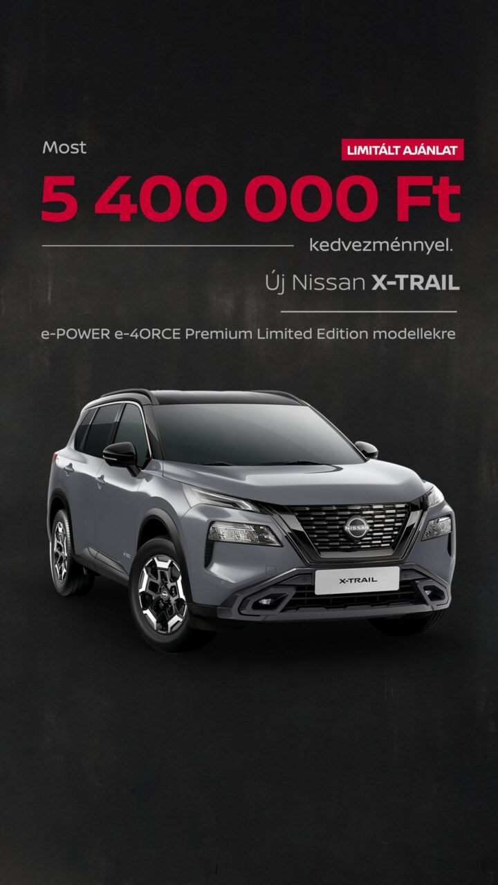 (3) Az ajánlat egyéni vállalkozók, cégek, társas vállakozások részére elérhető, a 2025.10.16. – 2025.12.31. között megkötött ügyfélszerződésekre, a készlet erejéig, vagy visszavonásig érvényes. Az autót 2026. március 31-ig forgalomba kell helyezni. A feltüntetett árak kizárólag tájékoztató jellegűek, márkakereskedésenként eltérhetnek, és nem minősülnek kötelező érvényű ajánlattételnek. Az árak a magyar forint árfolyammozgásának és az ÁFA valamint regisztrációs adó változások függvényében változhatnak. A változtatás jogát fenntartjuk. A képek illusztrációk. További információk a Nissan márkakereskedőknél, valamint a nissan.hu vagy nissaneve.hu weboldalon.